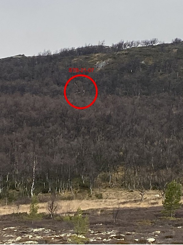 The first 6 holes at Storboren were on the lower part of the slope and encountered mostly unmineralized rocks of sedimentary origin. The last hole drilled, SBN-21-07, location shown on the map and image, encountered intrusive mafic to ultramafic rocks mixed with inclusions of sedimentary rocks similar to those drilled downslope to the southeast. There were several intervals of sulphide mineralization showing anomalous copper, cobalt, and nickel. Of the 11 holes drilled in 2021 at Storboren and Rødalen SBN-21-07 contains the 10 highest copper values, the 10 highest cobalt values and 8 of the 10 highest nickel values. 102 samples of drill core were analyzed. Copper values range from 1.8 to 1355 ppm with a mean of 144 ppm, cobalt values ranged from 15.4 to 97 ppm with a mean of 38 ppm and nickel ranged from 32.9 to 377 ppm with a mean of 157 ppm.