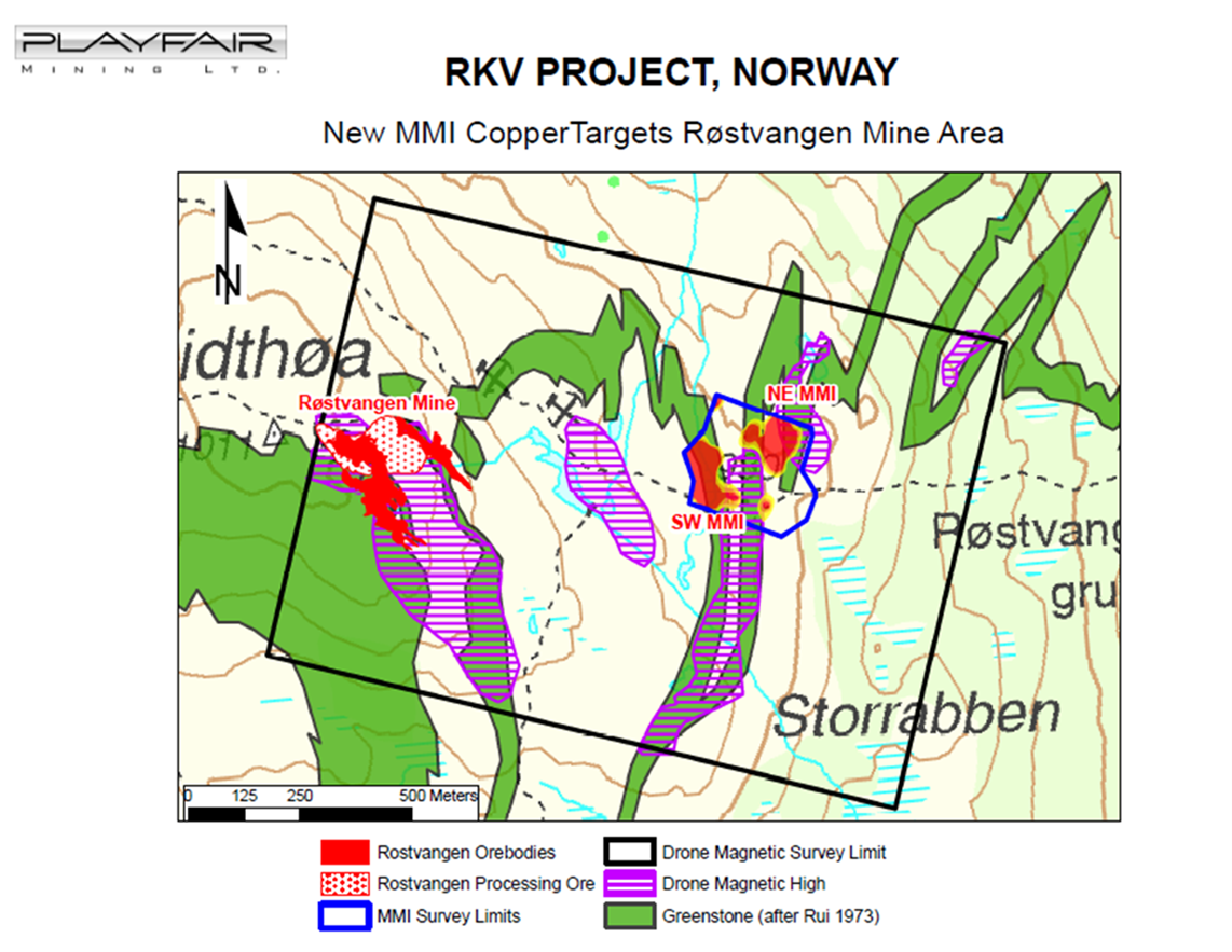 * Reported Røstvangen Mine production is historical in nature, pre-dates and is non-compliant with NI 43-101. Playfair has not undertaken any independent investigation of this reported production which should therefore not be relied on. However, Playfair believes that these reported results were produced by competent professionals following the standards of the time and are relevant to ongoing exploration.