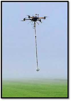 The aeromagnetic survey is being executed using MGT’s DroneMag system, a multirotor UAV outfitted with a vector magnetometer. The unmanned aircraft is configured as a X-8 built octocopter. The DroneMag system uses a 3-axis fluxgate magnetometer.