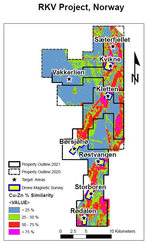 Playfair Mining Ltd., using modern technology to explore its 100% owned RKV Project in a large historic mining area in south-central Norway, has identified eight Target Areas considered as potential drill targets. The first target identified, Storboren, has been reported by Playfair (November 07, 2019 and December 05, 2019 News Releases) and one of the newest targets, Sæterfjellet, is described here.